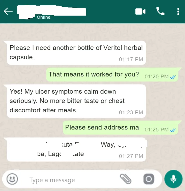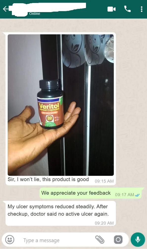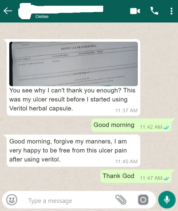 Chief Adebayo had stomach ulcer for 22 years. Now, he is completely healed. It does not matter how long H. pylori bacteria has been in your body. Veritol reaches it the same way in everyone.